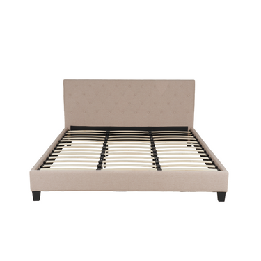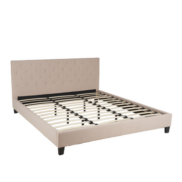 Estofada em tecido bege de alta qualidade, oferece um toque suave e acolhedor que harmoniza com diferentes estilos de decoração. A cabeceira com botões capitonados confere um charme clássico, enquanto as linhas limpas mantêm a modernidade do design.