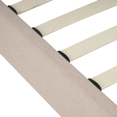 A base com ripado em madeira flexível garante suporte uniforme e ajuda a prolongar a vida útil do colchão.
