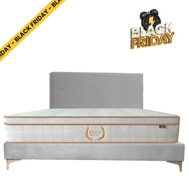 Colchão Gold – tecido IceSilk® Touch (toque fresco), viscoelástica SenseAdapt® (encaixe anatómico), camada Micro PocketSpring (resposta rápida) e núcleo de molas ensacadas 20 cm para suporte ergonómico e independência de movimentos